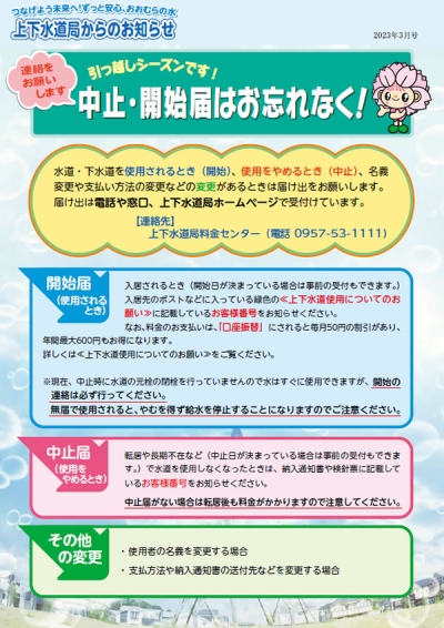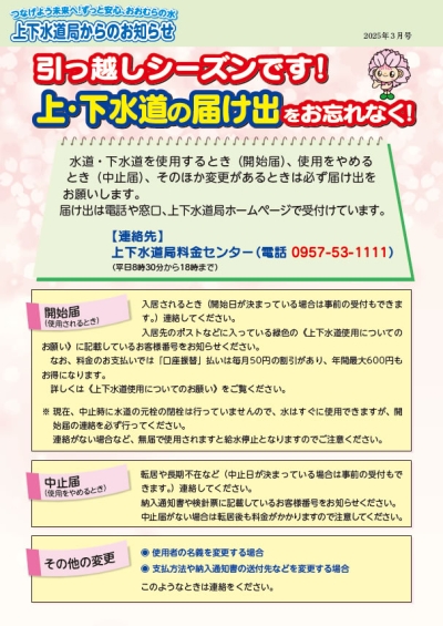 - 引っ越しシーズンです!上・下水道の届け出をお忘れなく!
